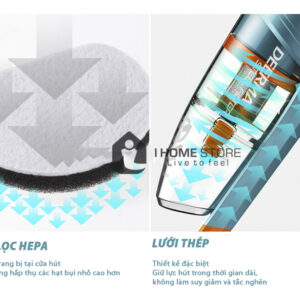 Deerma DX900 được trang bị bộ lọc HEPA cùng bộ lọc thép không gỉ. Rác bụi sau khi hút sẽ đi qua bộ lọc, trả lại bầu không khí trong sạch cho không gian gia đình bạn. Bộ lọc đóng vai trò rất lớn trong việc làm sạch và đảm bảo sức khỏe người dùng. Ngoài ra bộ phận cửa hút còn được trang bị thêm lưới thép có thiết kế đặc biệt, giúp duy trì lực hút và không làm tắc nghẽn rác bụi trong quá trình hoạt động.