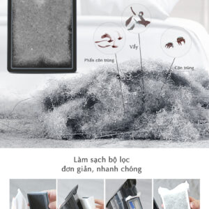 Bộ lọc giúp giảm thiểu tối đa bụi bẩn, thậm chí cả bụi li ti mắt thường không nhìn thấy. Cách làm sạch bộ lọc cũng hết sức đơn giản, chỉ với vài thao tác mở – tháo hộp bụi, người dùng đã có thể vệ sinh dễ dàng.