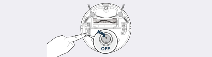 Bật công tắc nguồn của robot ở mặt đáy, mặt bên, mặt trên hoặc mặt dưới trước khi robot hoạt động.