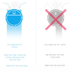 2 chổi cạnh giúp robot Ecovacs Deebot DJ35 làm sạch đồng đều và ít bỏ sót hơn so với làm sạch một chổi cạnh như các dòng robot hút bụi khác. Robot sẽ thu thập bụi từ hai phía, quét bụi tập trung vào phía trong, diện tích làm sạch rộng, giúp lau dọn nhà cửa sạch hơn.