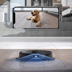 - Camera AI: Giúp ghi lại các chướng ngại vật thông thường trong nhà. Cùng lúc cho khả năng kết nối video trực tuyến theo thời gian thực. Qua đó bạn có thể sử dụng robot như một người quản gia để trông coi nhà khi bạn đi vắng. Những người có nuôi thú cưng có thể nhờ vào những trang bị này để trông chừng thú cưng của mình từ xa.