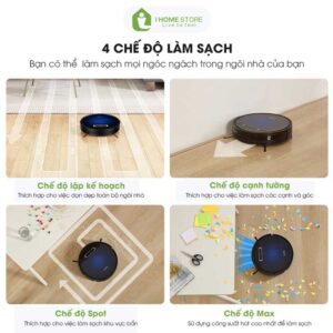 - Chế độ lau ướt: Robot sẽ đồng thời thực hiện việc hút bụi và lau nhà. Robot sẽ có cảm biến tự động lau khi robot vừa hút sạch.